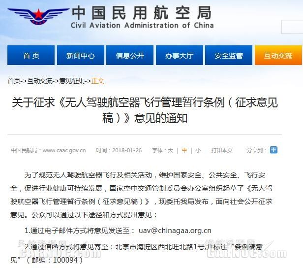 - 民航局:就無人機飛行管理暫行條例公開征求意見